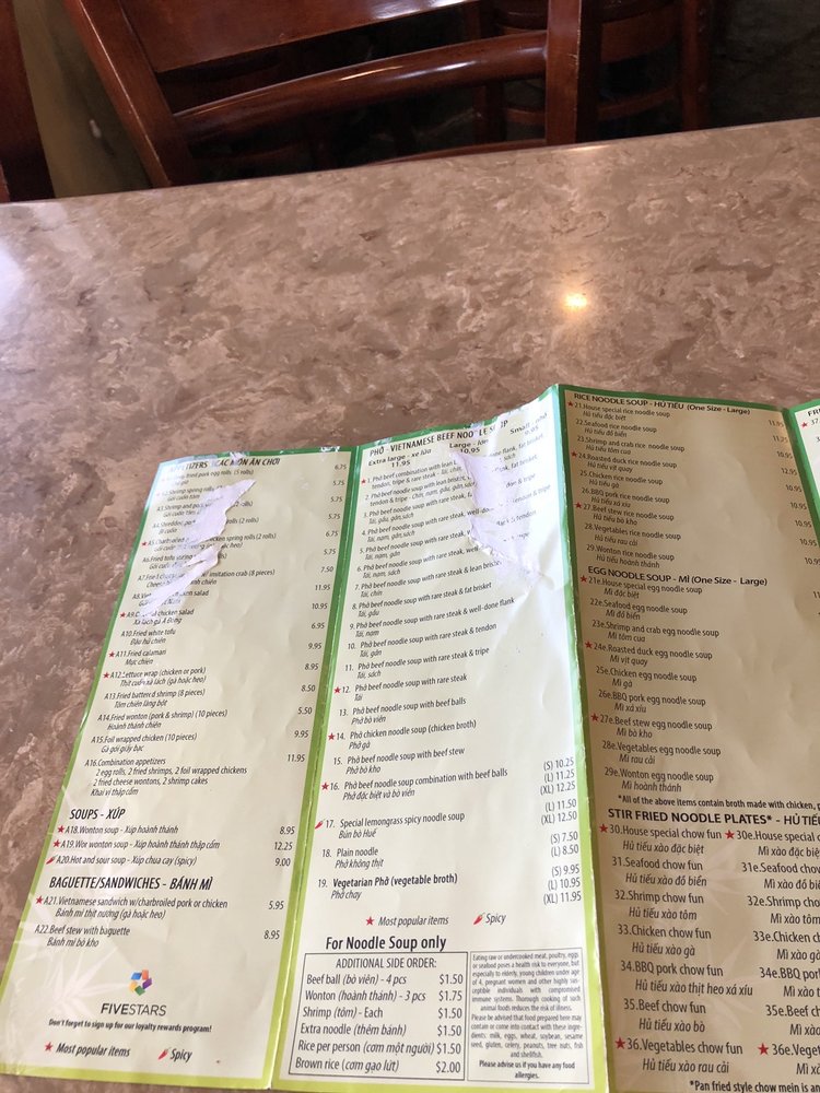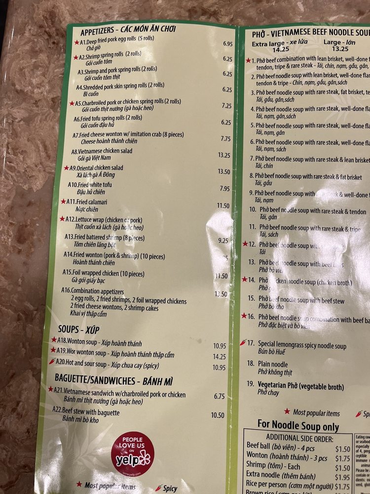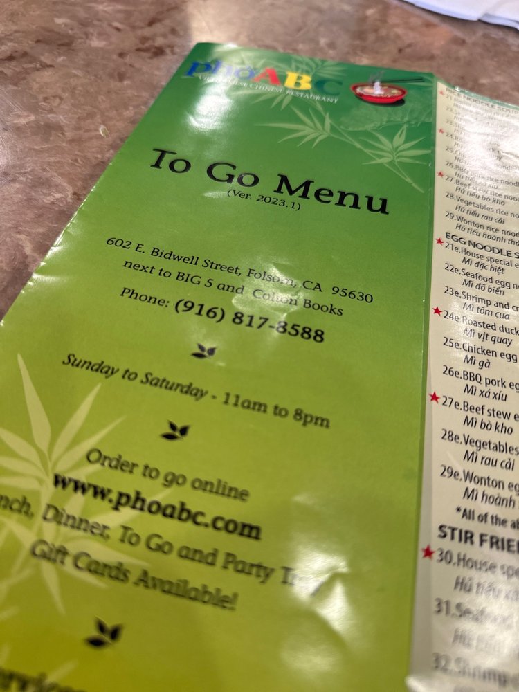 Pho ABC in Folsom, CA, is a hidden gem offering a wide range of Vietnamese dishes. The menu includes appetizers like Deep Fried Pork Egg Rolls and refreshing Baguette and Sandwiches like the Vietnamese Sandwich with a flavorful filling. Customers rave about the delicious Pho Beef Soup and the extensive options for vegetarians and vegans. The excellent service, clean environment, and affordable prices make it a favorite spot for many. Reviewers recommend the oriental chicken salad, Bun Bo Hue, and the grilled pork and shrimp over vermicelli. The restaurant's spacious and welcoming setting, along with friendly staff, adds to the overall dining experience. With options for takeout, delivery, and catering services, Pho ABC is a must-visit for authentic Vietnamese cuisine enthusiasts.